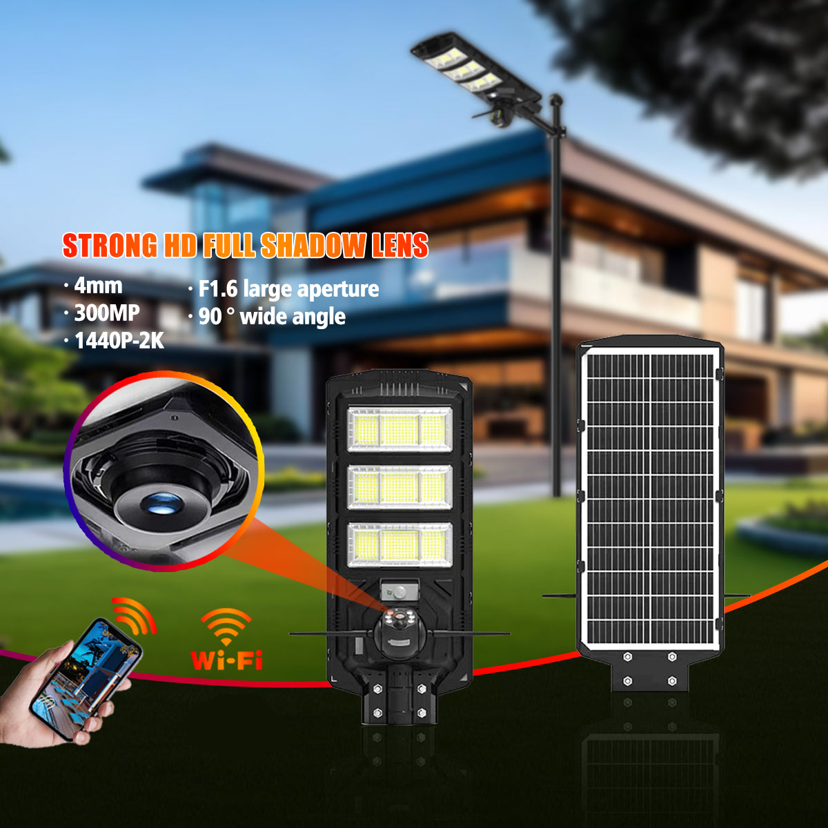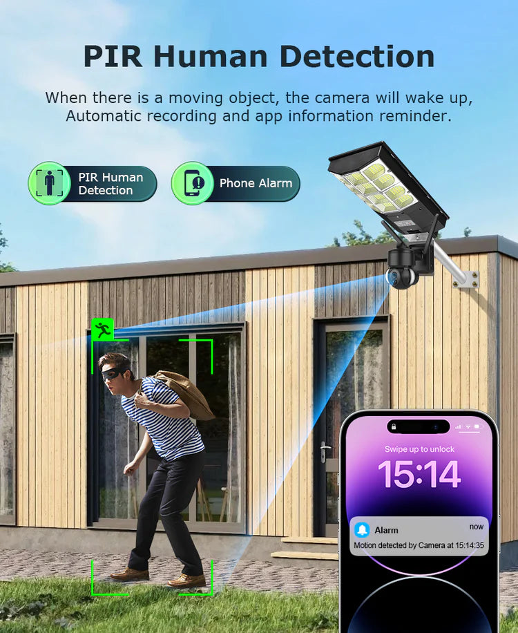 Nombre del producto: Lámpara Solar de Calle 1000W con Cámaras de Seguridad Integradas (Modelo V380Pro)